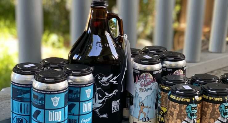 Duck Foot Brewing Company, located in Miramar (8920 Kenamar Dr Ste 210) is open 12-6 p.m. for your beer needs. We’re pleased to now offer delivery to much of San Diego. Curbside pickup is also available for cans, growler fills, and kegs; check out the selection at this link; when you arrive, just give us a call at 858-433-7916. We have fresh Duckzilla Double White IPA that was just canned yesterday!